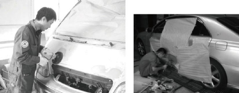 ちょっとした擦り傷からえくぼや大きなヘコミの板金塗装まで低価格でご提供しております。長年の経験を積んだスタッフが熟練された技術で作業致します。お車をお持ち頂ければすぐにお見積もり致します。面倒な接触事故等の際もお気軽にお問い合わせ下さい。すぐに対応致します。